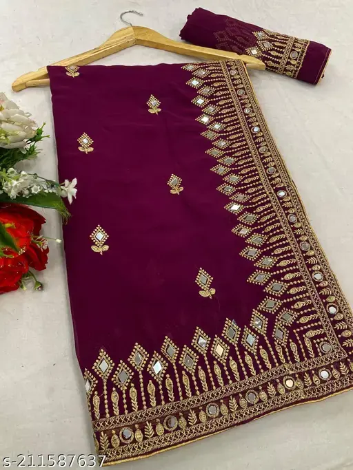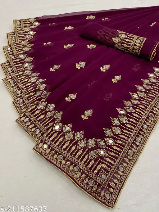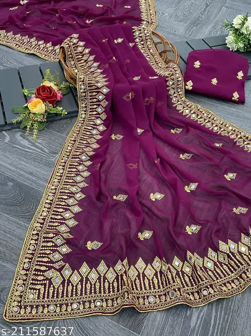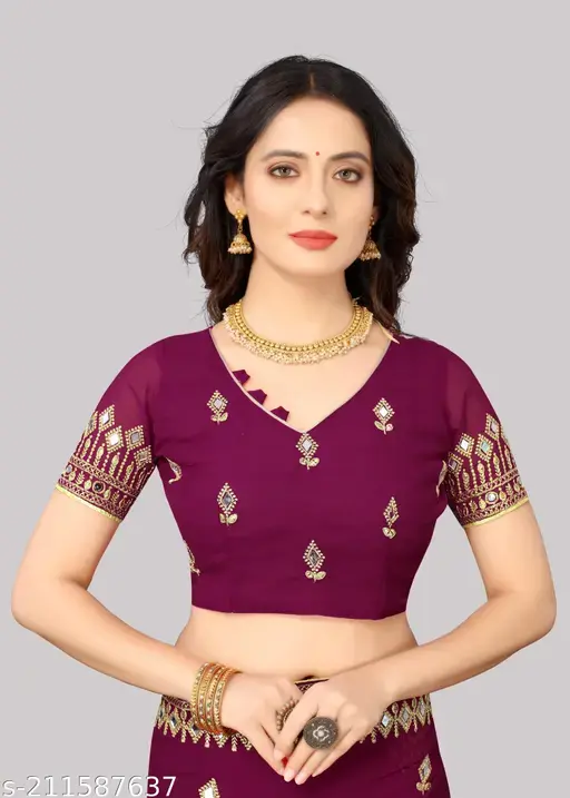 Step into elegance with this Self Design Embroidered Bollywood Georgette Saree, designed for women who love chic, sophisticated, and trendy ethnic wear. Made from lightweight georgette, this saree drapes beautifully to enhance your silhouette. Featuring delicate floral embroidery and a solid/ plain base, it brings a perfect balance of simplicity and glamour. The saree comes with a matching silk blend running blouse designed with the same border pattern, allowing you to tailor it to your perfect fit. Ideal for weddings, festivals, religious ceremonies, and special occasions.