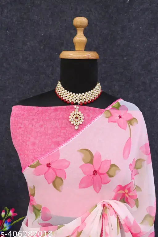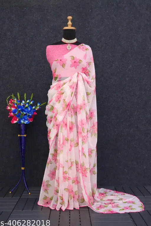 Add charm and elegance to your ethnic wardrobe with this Flower Designer Saree. Made from soft chiffon, it is lightweight, flowy, and comfortable, making it perfect for parties, festive occasions, or casual gatherings. The saree comes with a matching printed Georgette running blouse for a coordinated and stylish look.