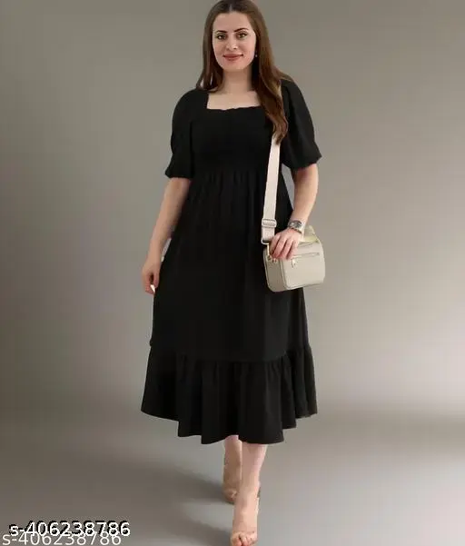 Elevate your everyday style with these Delta Fabric Dresses, crafted from premium crepe fabric for a smooth, lightweight, and comfortable feel. Designed with short sleeves and a classic solid pattern, this dress offers a timeless look that’s easy to style for multiple occasions. The flattering length and relaxed fit make it perfect for daily wear, office use, casual outings, or evening gatherings. Simple yet elegant, this dress is a versatile wardrobe essential for modern women.