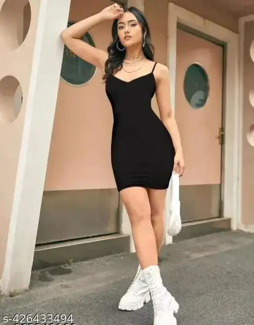 Step out in confidence with this Trendy Stylish Short Bodycon Dress in Black, designed to hug your curves and elevate your everyday style. Crafted from soft and breathable cotton fabric, this sleeveless bodycon dress offers all-day comfort while maintaining a sleek, modern silhouette. The solid black color adds a timeless appeal, making it a versatile choice for casual outings, parties, club wear, or evening get-togethers. Its short length and fitted design create a bold yet elegant look that never goes out of style.