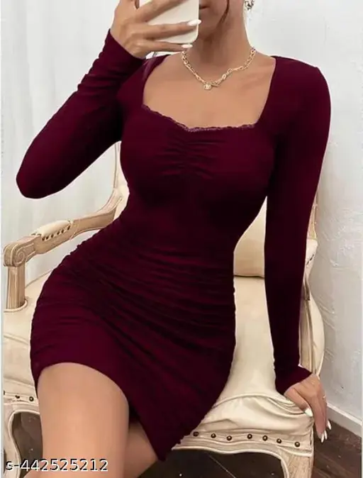 Turn heads at every party with this trendy bodycon dress, designed to give you a sleek and confident look. Crafted from premium Lycra fabric, this dress offers a comfortable stretch that hugs your curves perfectly while allowing easy movement.
