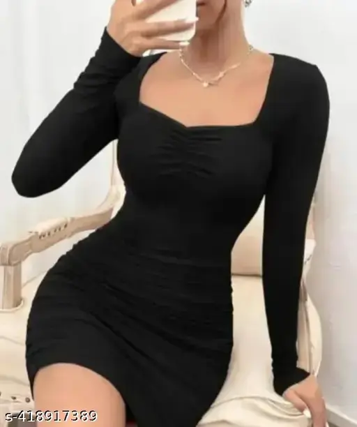 Turn heads at every gathering with this Stylish Party Wear Women Dress made from premium Lycra fabric. Designed for a sleek and flattering fit, this long-sleeve solid dress hugs your silhouette while offering ultimate comfort and stretch. Perfect for parties, dinners, or special occasions, its classic solid pattern adds sophistication, making it easy to accessorize with your favorite jewelry and heels. Available in a wide range of sizes from XXS to XXL, this dress ensures a perfect fit for every woman.
