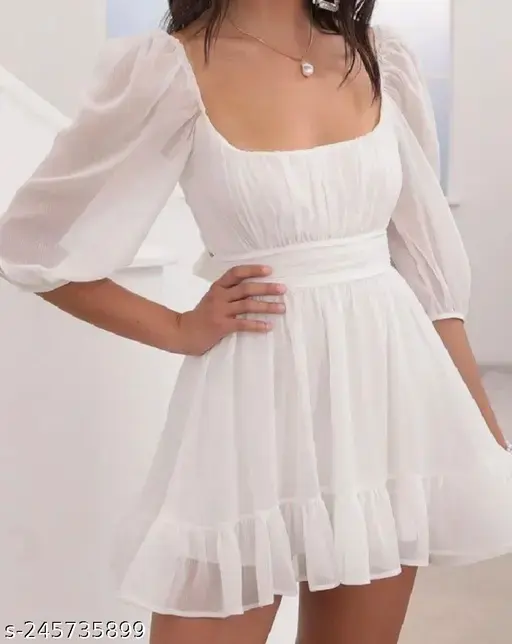 Step out in style with the Pretty Fashionista Women’s Dress, a perfect blend of elegance and modern fashion. Designed for women who love effortless style, this dress is crafted from premium Georgette fabric, offering a lightweight, flowy feel and all-day comfort. The solid pattern and three-quarter sleeves make it a versatile choice for casual outings, parties, weddings, and festive occasions.